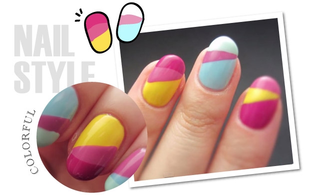 POINT 2:每個指頭交錯的擦上桃紅色、藍色、黃色