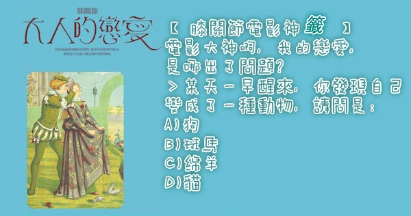 >>某天一早醒來,你發現自己變成了一種動物,請問是: