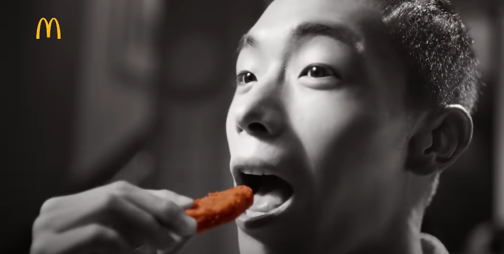 ▲ 牧森拍攝麥當勞雞塊廣告,認為要掌握精準位置,靠肌肉記憶。(圖:截自網路Youtube)