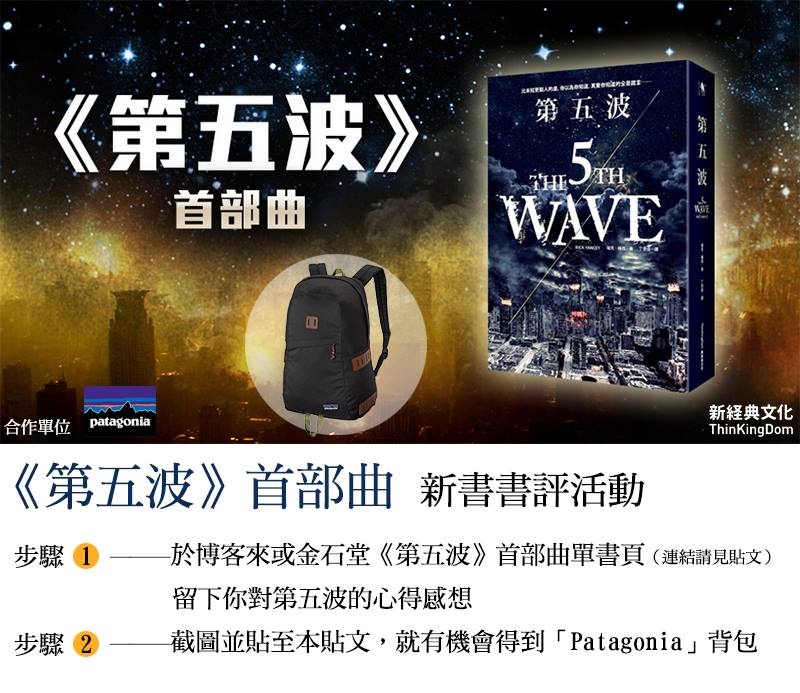 即日起,只要在網路書店《第五波》書籍頁面留下讀後心得,就有機會得到全球評價最高的戶外運動用品「Patagonia」背包(建議售價2760元)!想要一同體驗末日實境的粉絲們,快快把握機會!