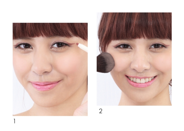 使用粉撲或刷子沾取腮紅(量要少),用輕拍的方式(力道務必輕柔),在笑肌位置拍出像小Baby般的紅潤感,營造出好氣色。