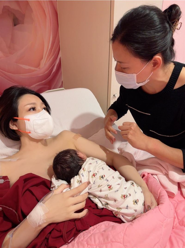 ▲林可唯(左)產後立刻開始學習餵母乳。(圖/翻攝自林可唯臉書)