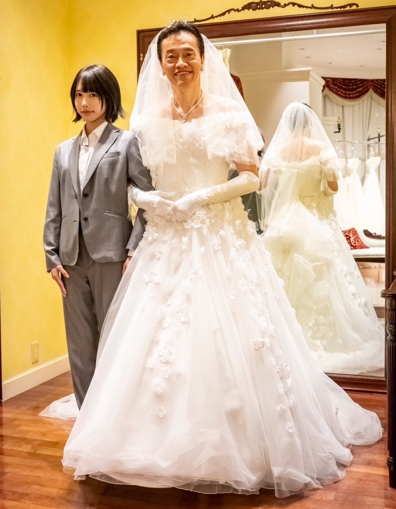 ▲ 遠藤憲一獻白紗初體驗。(圖:摘自官方X)