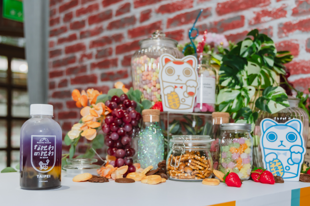 ASIA」中將真正為粉絲提供專屬的特調飲品。台北限定飲品以清新的蝶豆花糖漿與濃郁水蜜桃果醬為基底,搭配台灣特色的Q彈珍珠與氣泡水,打造出外觀夢幻、口感豐富的漸層飲品。搖晃後飲用,不僅層次感更鮮明,還能感受到多層次的味覺享受。此外,購買特調飲品即可獲贈原創設計杯墊一枚,飲用完畢還能將印有可愛