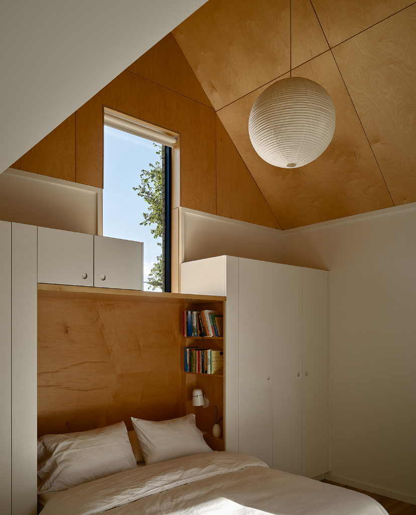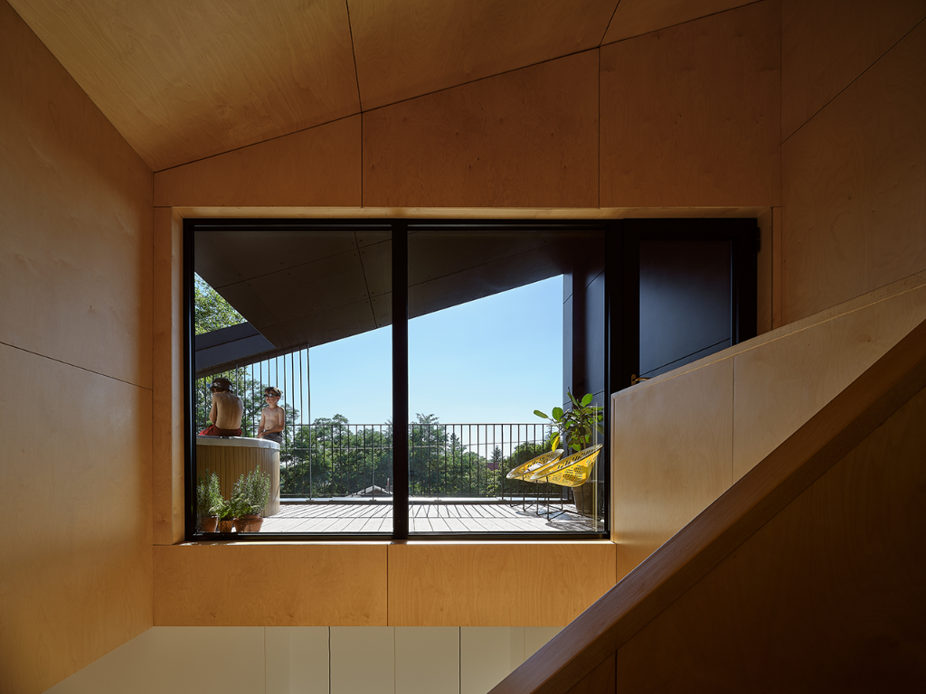 此外,最令人感到驚喜的是隱藏在各處的小巧思,像是小孩房斜屋頂下方隱藏著閱讀小閣樓,設計師特別打造了專屬的爬梯方便上下;主臥室樓上則規劃了小型書房與音樂空間,完美平衡工作與休閒需求;頂樓露台更是整棟住宅的亮點,設置了日式泡湯池,讓住戶能一邊泡澡,一邊欣賞漢伯河的壯闊景觀。