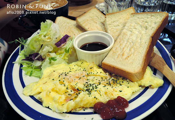 Book拚盤 NT$130,餐點主要有沙拉、麵包、果醬及蛋,份量以一人份來說還蠻足夠,蛋煎的很滑嫩好吃!