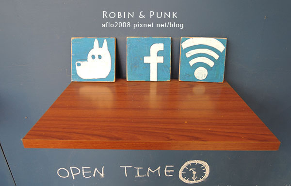 牆上還放著木製的小牌子,提醒您這裡有提供免費的Wifi,記得打卡,還可以攜帶寵物,對有養小動物的人是一大福音!