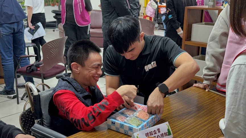 本次活動由桃園市志推中心與財團法人腦性麻痺基金會合作,帶領企業志工與基金會的服務對象一同進行禮盒包裝,透過與身障者合作的過程,讓企業夥伴們對身障族群有多一份的認識,並共度一個有意義的時光。
