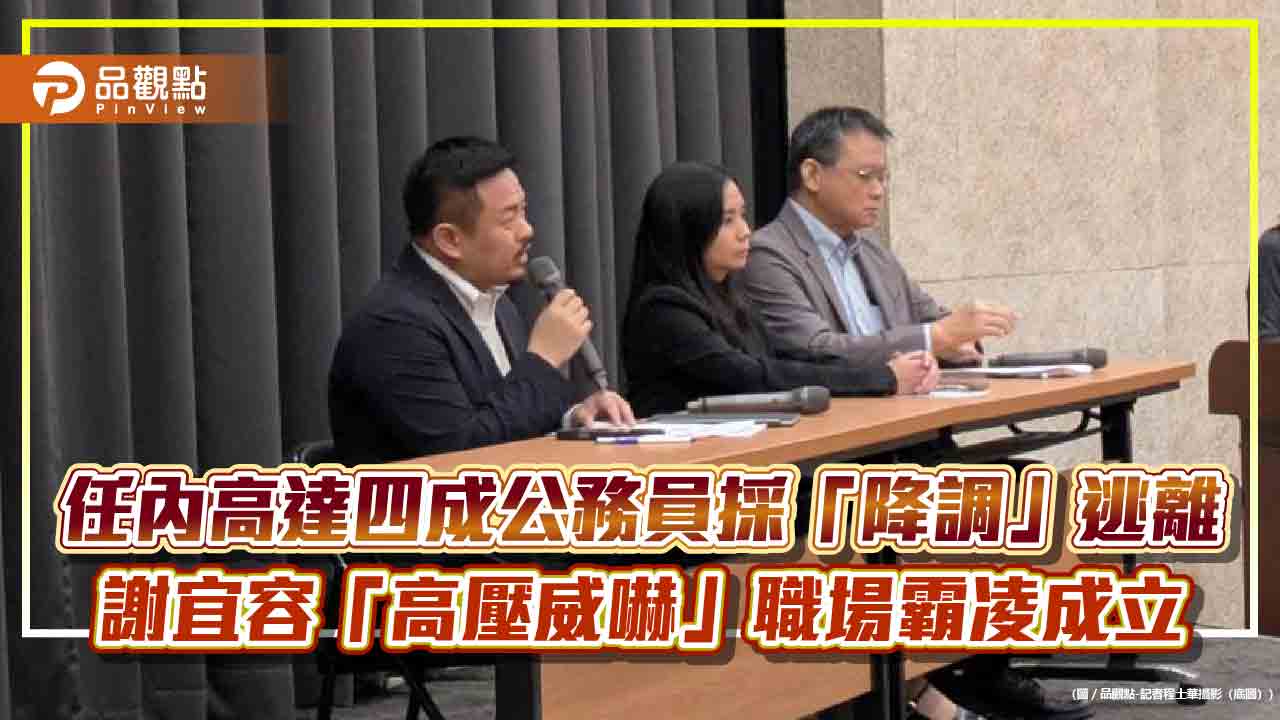 洪申翰在記者會上指出,在謝宜容任內離退任的81人當中,具有公務員身份者,甚至有四成是寧願「降調」也要走,這在公務機關「非常不尋常」。