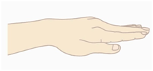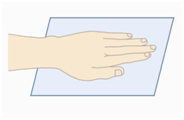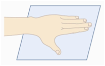 - 手平放在一個平面上,讓大拇指與其他四指併攏,皆接觸在平面上。