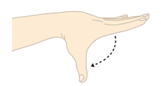 - 大拇指朝向地板的方向慢慢打開遠離食指,最後與食指呈90度。