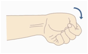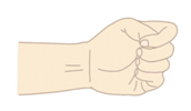 - 保持同樣的姿勢,大拇指彎曲,讓其他四指包住大拇指並握拳。