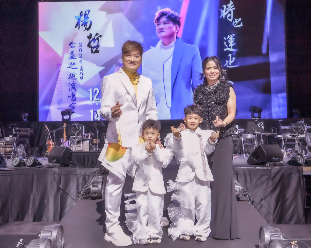 ▲ 楊哲高雄個唱老婆兒子現身舞台演唱力挺。(圖:豪記唱片)