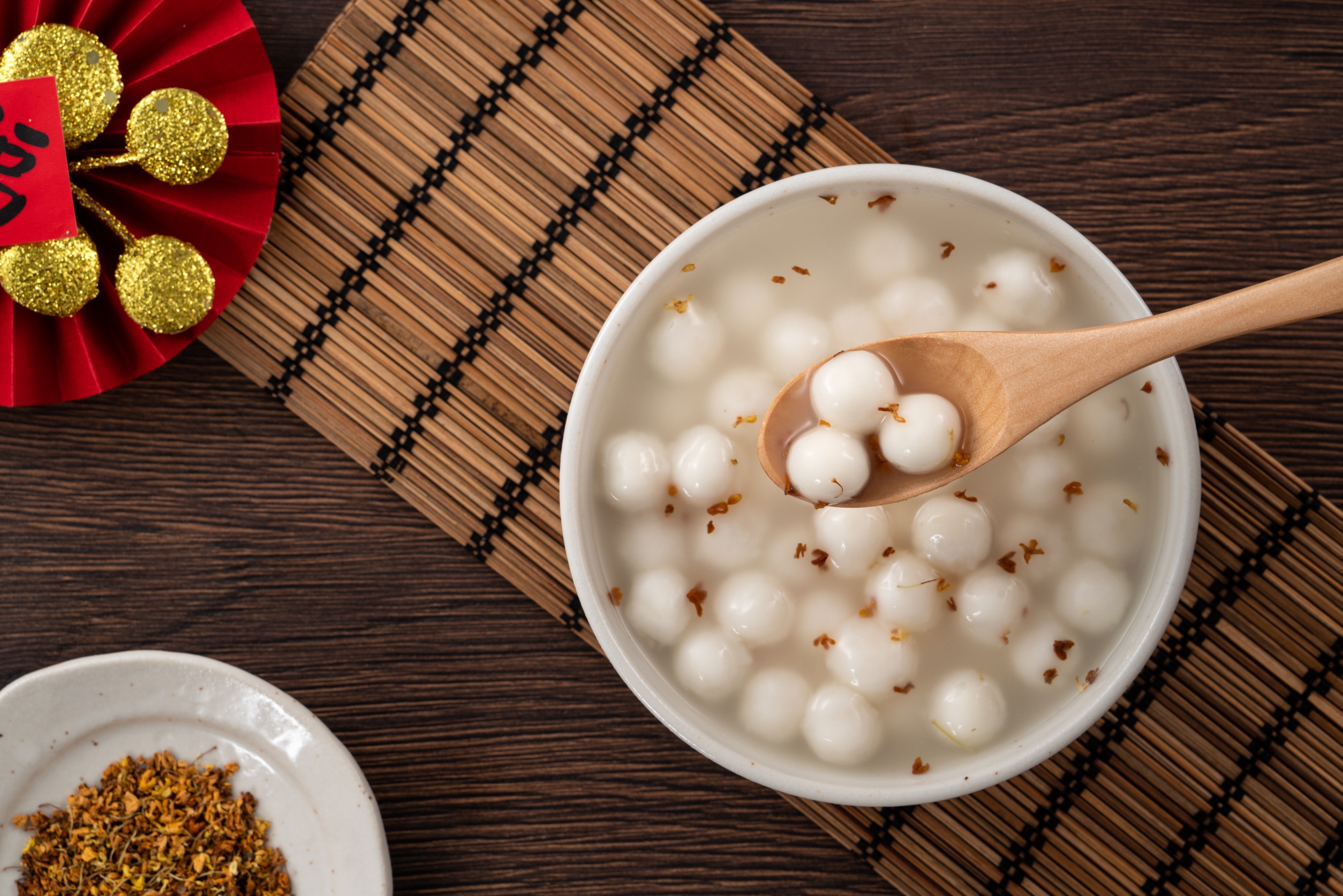 作法:先燒開一鍋水,再把湯圓倒入鍋中煮軟之後倒入酒釀和桂花醬,稍微煮一下就能盛碗食用。這是適合大人吃的優雅系湯圓料理,桂花甜香的風味讓冬天都變溫暖了。