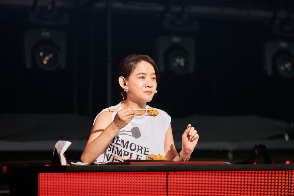 原來她一直有個心願:「雖然有點鬼祟,但我幾乎都吃遍了,我一直很想在夜市,吃就吃個十攤,因為我不可能吃十攤,胃就這麼小,夜市王滿足了我多年來的夢想,太開心了。」