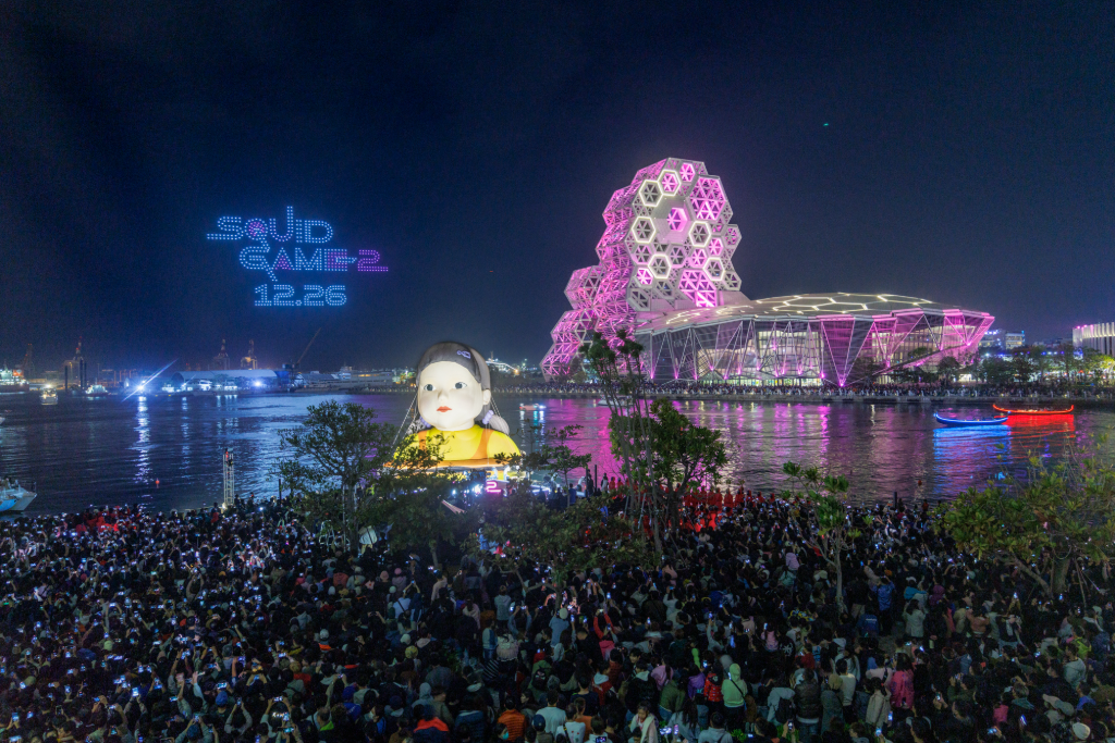 ▲ Netflix《魷魚遊戲》「1.2.3.高雄人」萬人粉紅派對,共同粉亮高雄港灣。(圖:Netflix)