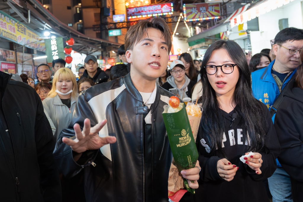 輝人回想過去來台的經驗,曾經在白天的市集玩過套圈圈遊戲、吃到味道非常鮮甜的烤扇貝,也難忘芒果的甜蜜滋味;所以這趟來台,她最大心願就是能有一點時間逛夜市:第一攤先買了綜合水果的糖葫蘆,直呼好甜好好吃,沒想到第二串卻是冷凍尚未退冰,硬梆梆咬不下去,連她自己都笑了。