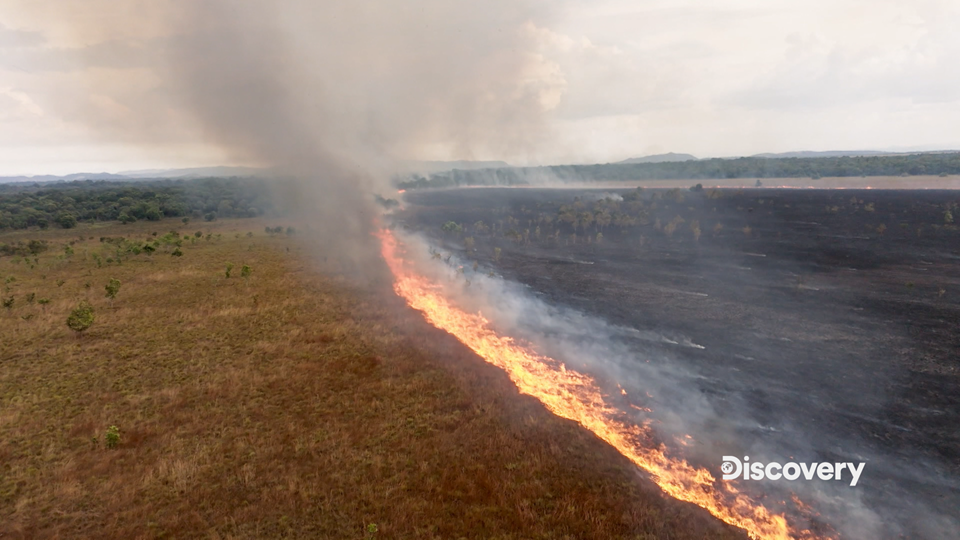 ▲ 艾德抵達哥倫比亞奧里諾科河的當天,恰好遇到當地野火延燒不斷。(圖:Discovery)