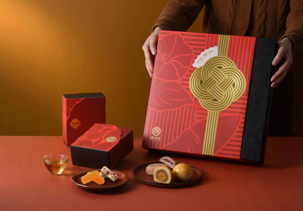 日本「結」與「吉」為諧音字,有著豐富多彩的內涵,虎珍堂春節禮盒以「同心結」為概念象徵"團圓美滿、吉祥如意",並輔以虎尾在地特色”地瓜、地瓜花“等圖騰底紋,展現”新春慶團圓、餅香情意濃”的意象整體傳達「虎尾名物、圓滿如意、福氣相連」的祝福。