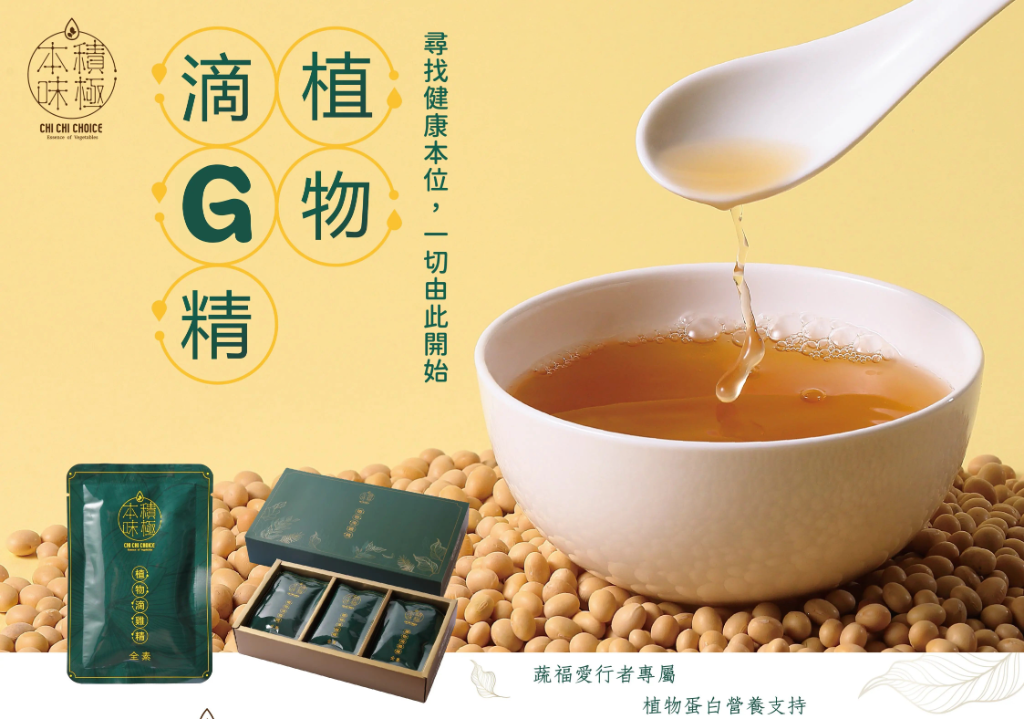 新年時節,送禮不僅是心意的傳達,更是健康的祝福。「植粹滴精」新春禮盒,與農業試驗所產學合作,推出全台第一支植物蛋白滴G精,嚴選發酵黃豆萃取而成,創新植物性配方,不含雞肉,滿足全素者需求。結合高壓萃取技術,營養濃縮,便利攜帶。包裝設計以典雅深綠搭配金色字體,呈現低調奢華與自然的完美結合,是送親友、傳遞健康祝福的最佳選擇。