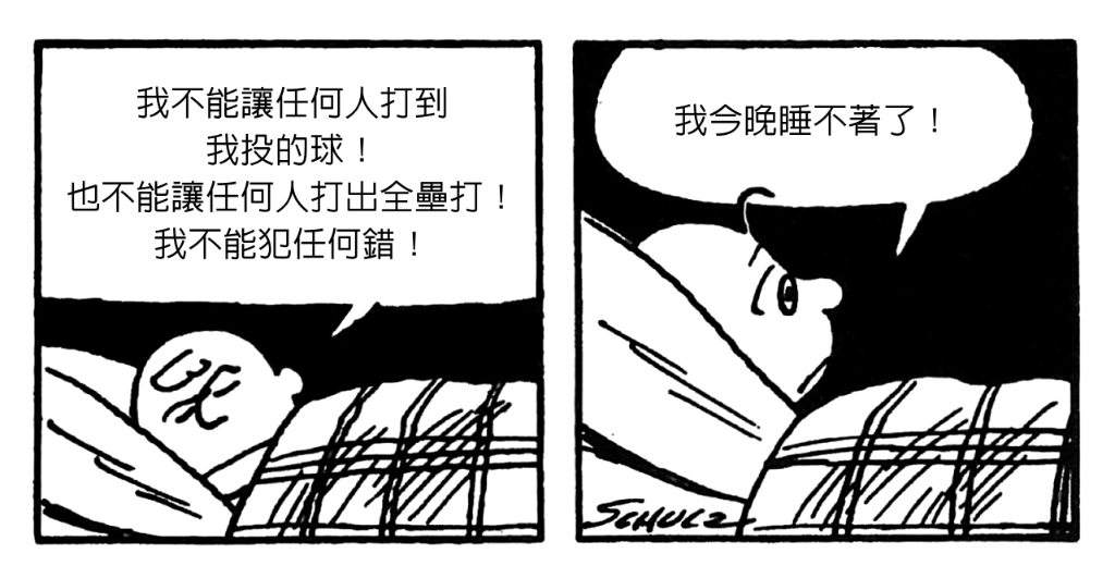 查理布朗永遠覺得自己不夠好,所以他對失敗的擔憂導致他整晚睡不著,而這件事又影響了他隔天在投手丘上的表現。偶爾,查理布朗想像自己投出一場無安打也無全壘打的比賽。雖然他的紀錄一直以來都很差,他還是對奇蹟抱有希望。