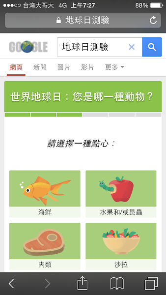 點 Google 首頁 的地球開始進入測驗