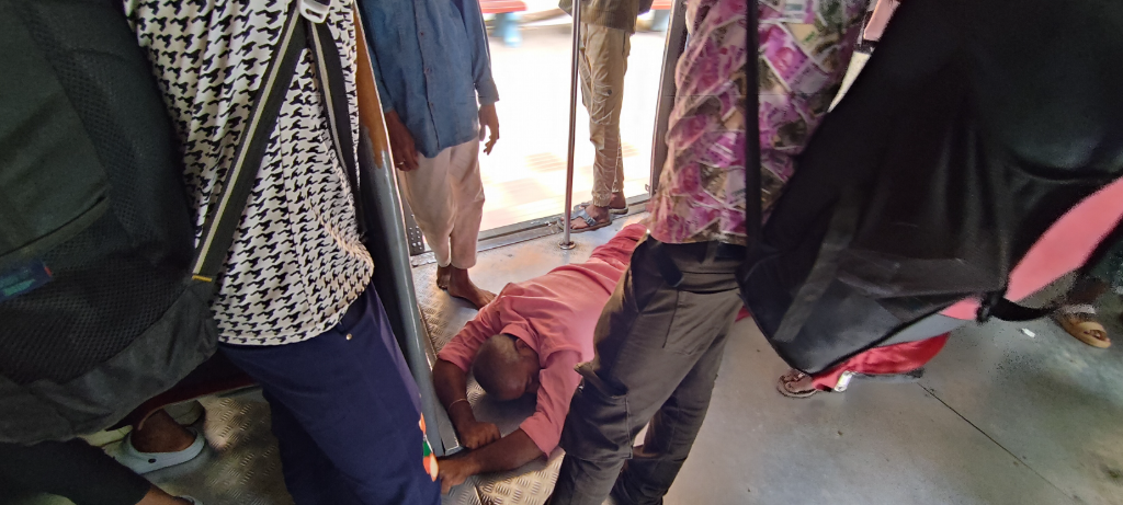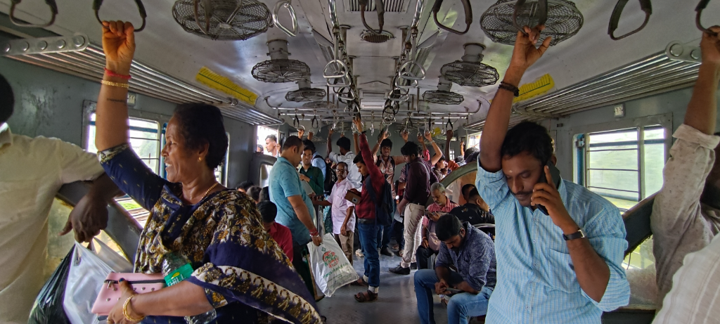 2009 年亞太影展在臺灣舉辦,印度寶萊塢電影獲獎之時,得獎人致詞:「印度電影已經進入快速的巔峰期」,同樣的2024年印度的人口、基礎建設也進入快速發展期,好多首府地區的機場捷運以及地鐵捷運,每天以公里數推展到城郊,舊時的通勤火車並未因此退卻,反而因為價格便宜,學生、上班族、遊民便利的上下火車,甚至根本沒有查票人員,沒有柵欄,乘客可以大步走進月台,直接踏入車廂。從清奈的市場火車站往海邊,一張票10盧比(約4元台幣),要買不買自