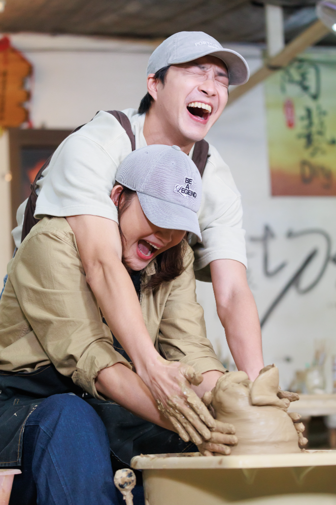 ▲ 錢薇娟、江宏傑兩人合力捏陶土。(圖:好看娛樂)