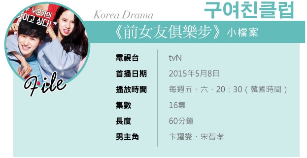 由tvN電視台強檔推出的最新韓劇《前女友俱樂步,故事講述的是人氣網路漫畫作家方明洙(卞耀漢 飾)將自己與前女友們的戀愛經驗搬上螢幕後,與電視製作人金秀珍(宋智孝 飾)之間發生的爆笑愛情故事。