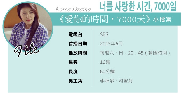 由韓國電視台SBS改編自台灣偶像劇《我可能不會愛你》而創作出的最新韓劇《愛你的時間,7000天》 ,是河智苑繼《奇皇后》之後首度挑戰的翻拍作品。故事架構基本上就是大家所熟悉的程又青和李大仁之間,由友情進化為愛情的浪漫故事。不過,在不同的文化背景下,同樣的故事會有什麼樣不同的詮釋,真的令人非常期待!