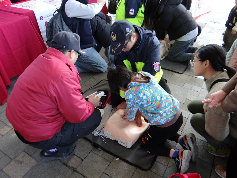 ▲小朋友現場演練心肺急救術操作。