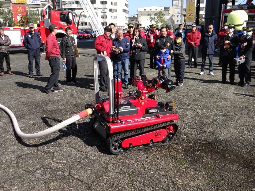 ▲現場展示遙控車滅火利器。
