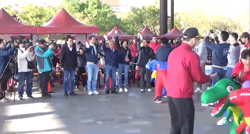 ▲代理縣長等來賓為恐龍競走趣味賽鳴槍。