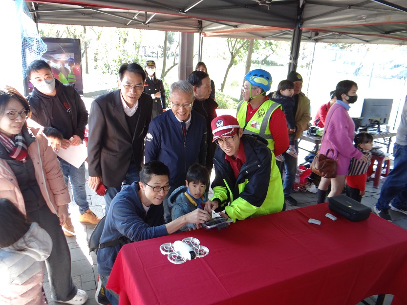 為推廣活力親民、健康清新、服務親切的消防形象,活動由羅東芝蔴村幼兒園熱情洋溢的熱舞開場表演。宣導活動另一波高潮,即為親子趣味競賽,親子穿恐龍裝挑戰水帶佈線、拍球入洞及指定跳躍等項目,大小朋友齊心協力完成任務,留下難忘的美好回憶。另外現場還有提供小型空拍機模型供民眾操作、電腦模擬飛行體驗,參加小朋友都流連忘返,覺得空拍機體驗好玩又有趣,並且讓民眾瞭解空拍機偵測災害現場後,可提供救災資訊給現場救災人員,讓災害事故指揮搶救事半功倍。