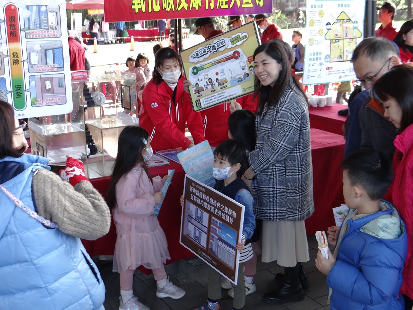 ▲防火隊現場宣導如何防火及防一氧化碳中毒。