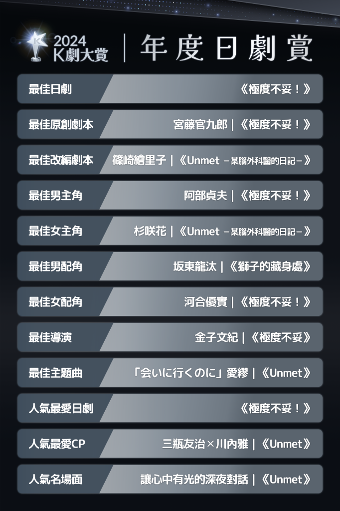 2024 第 6 屆「K劇大賞-年度日劇賞」,邀請「Drama