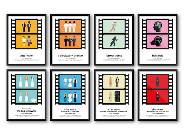 瑞典設計師Viktor Hertz的計畫「Two-frame pictogram movie posters」挑戰只用兩格漫畫的方式,把經典電影的故事講完,目前正在群眾募資網站Kickstarter上開放預購。他以極簡畫風,把人物角色在電影中的形體變化巧妙地描繪出來,令人會心一笑。
