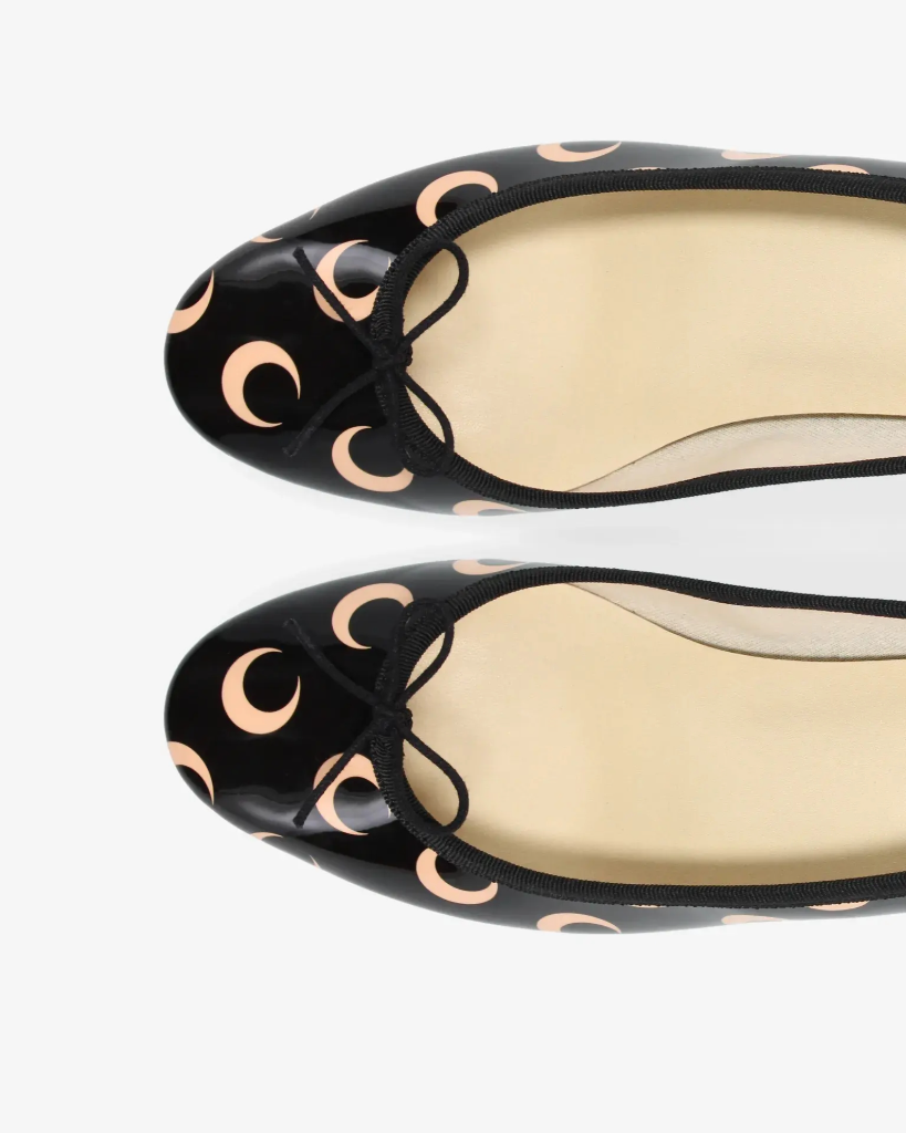「在我小的時候,就被Repetto芭蕾舞鞋的優雅風格所吸引。而且,它們正是在我家鄉聖梅達爾-德-埃克西杜伊附近生產。對我和姐姐來說,參觀這家工廠是一次魔幻般的經歷,它帶我們走進了工藝的世界。今天看到我的標誌性‘月亮’印花出現在這些經典鞋款上,真是太激動了。」 —— Marine Serre