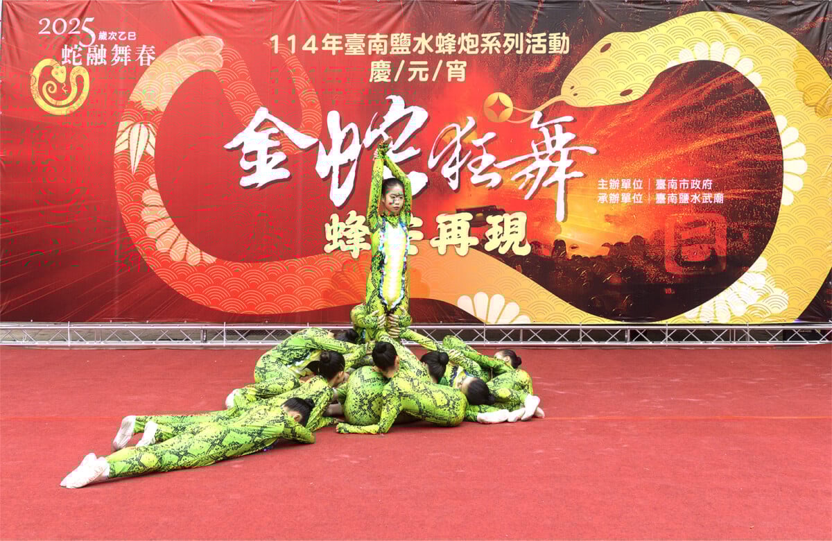 今年鹽水蜂炮活動搭配農曆生肖年以「金蛇報喜蛇年行大運」為活動主題,打造精美花燈炮城,並邀請磐果舞團、臺南市各國中、小表演「大臺南囝仔仙拚仙」活動,亦推出蜂炮組裝體驗營暨探訪老街文化之旅,系列活動精彩豐富。