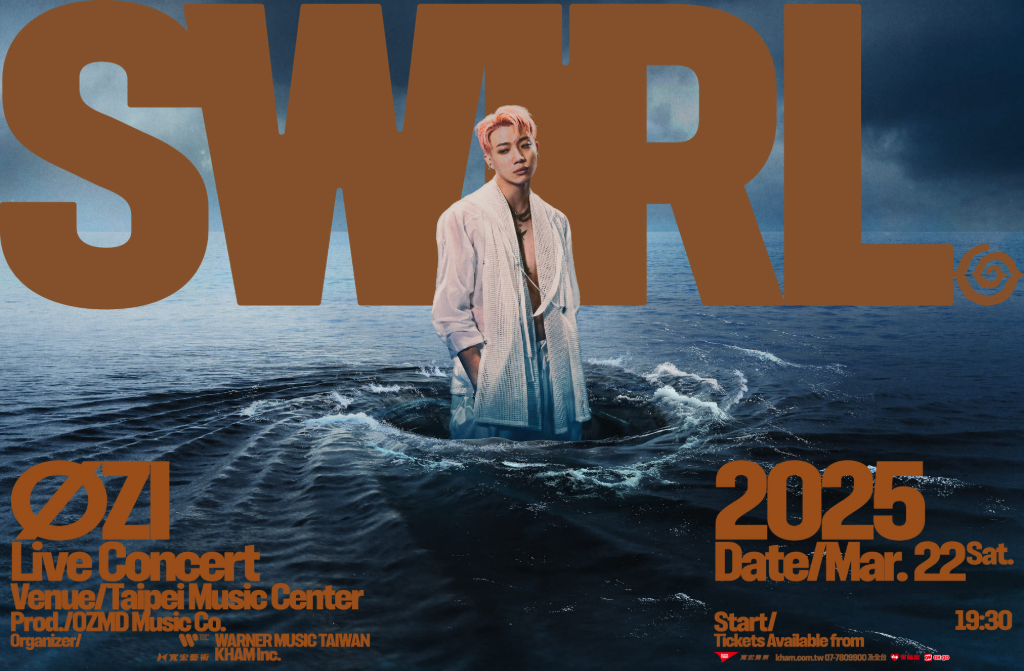 ØZI《SWIRL 漩 · 渦》2025 LIVE CONCERT將於3月22日在台北流行音樂中心熱烈舉辦,門票開賣時間為2月8日中午12點,購票請洽寬宏售票、萊爾富及OK超商。