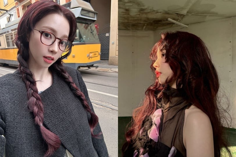 2025秋冬髮色推薦1:黑醋栗紅棕色 - Karina 同款