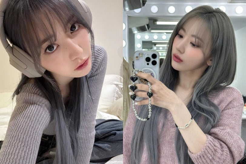 LE SSERAFIM 的成員小櫻花,去年染的灰藍色簡直就是冬季冰雪女王,染完後帶有一種高冷的氛圍,更散發出一種清新、沉穩的感覺,給人如同冬日雪景中霧氣蒸騰的冷冽之美。且灰藍色的髮絲,無論是在日光還是陰天的光線下,都能呈現出柔和而深邃的色澤,讓人感覺既神秘又優雅。