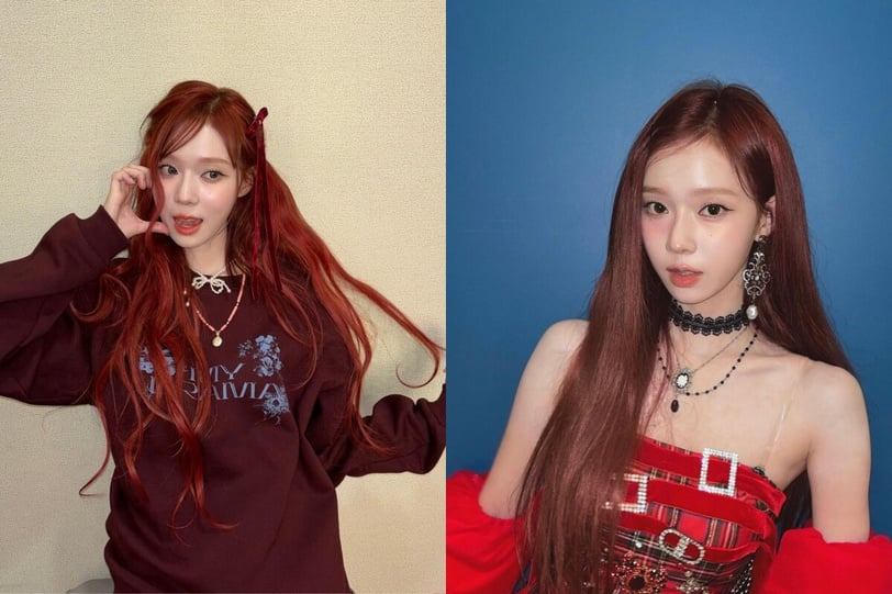 aespa的隊長Karina近期都以紅棕色髮色進行活動,IG上也上傳了多組照片。像Karina這種膚色偏冷且很白的人,非常適合帶一點紫調的紅棕色,能增添整體的暖意,且在室內和室外都呈現不同光澤,在陽光下的紫調會更明顯,是一款顯白又顯氣色的髮色。