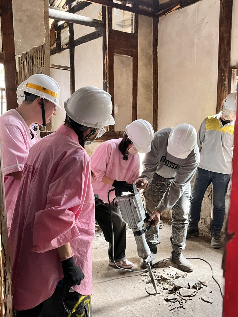 拆隔間時藝人拿起大錘子猛力往牆上用力砸,瞬間土塵濔漫,也讓眾人大喊太療愈了,沒想到接下來拆天花板可是讓藝人吃盡苦頭,不僅阿翔拆的滿臉全灰塵,無尊的衣服也遭殃被灰塵沾滿了一大片,讓無尊無奈的說「這是我新買的第二天…」,但也體會到工地職人的辛苦。