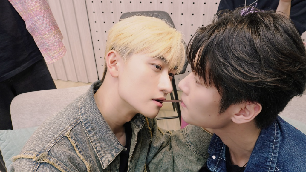 主演「獨佔CP」毛祁生、張家陞以及「圖章CP」徐瑋澤、朴靖恆也在播出當天直播和觀眾暢聊劇情,結果現場High到混亂一片,不僅嗆聲要「互比大小」,還搶著互吃Pocky棒拚放閃,讓留言區觀眾笑歪,直言「他們是綜藝魂爆發了嗎?」。