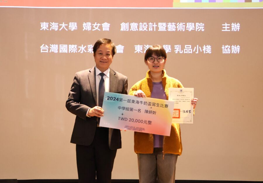 東海大學「第一屆牛奶盃寫生比賽」得主揭曉,(15)日於東海大學銘賢堂舉行頒獎典禮,中學組、國小組冠軍分別由台中一中陳妍妡同學、光隆國小李彥宏同學奪下,作品雙雙展現優異構圖技巧與色彩運用,獲得評審一致好評。評審團指出,中學組的奪獎作品具高度的素描寫實技巧,水彩技法與色感優異,運用印象派的表現手法將自然景物的光影變化、空間氛圍完美展現,國小組則各個呈現可愛人物與動物造型元素,以活潑的動態、鮮麗協調的色彩搭配與細緻技法,呈現東海的特色校園。