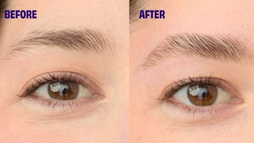 不論眉毛本身濃密與否,都必須修眉!尤其「偽素顏野生眉」基本上是順著原本的眉型描繪而成,因此擁有良好的眉型基礎很重要,可讓畫眉毛變得事半功倍、更好上手!若不太會修眉,或不確認本身適合什麼眉型,建議可試試專業的蜜蠟修眉,對比傳統刮刀修眉兩三天就需刮除雜毛,蜜蠟修眉修一次就能維持三至四週,且不會卡毛根,眉型更為俐落清晰。(圖左為修眉前、圖右為修眉後)
