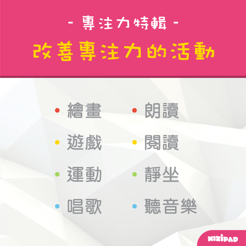以下 Kizipad 整理一些可提升專注力的小活動,提供給爸媽參考看看喔~