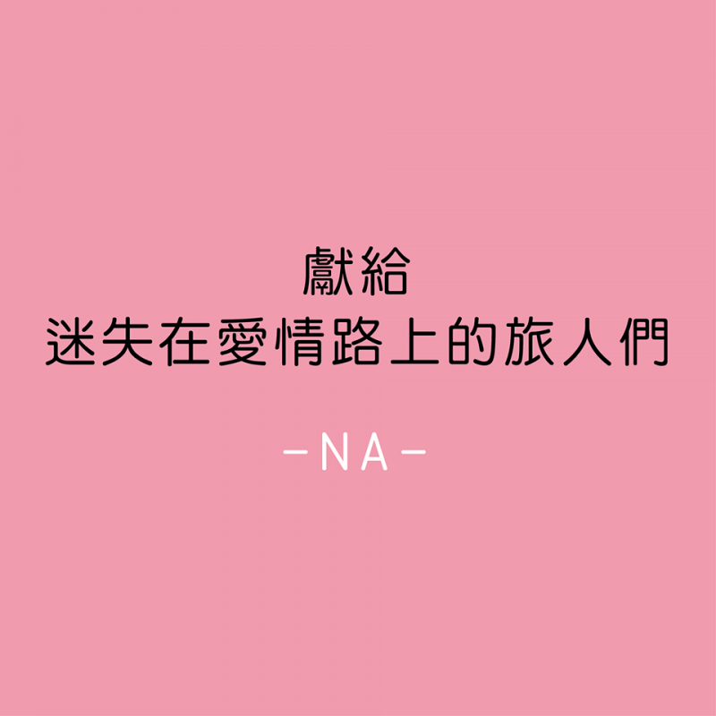 NA不是愛情顧問,只是個迷失在愛情裡的旅人。期望著,每個人都能擁有更美好的愛情,發現更好的自己。