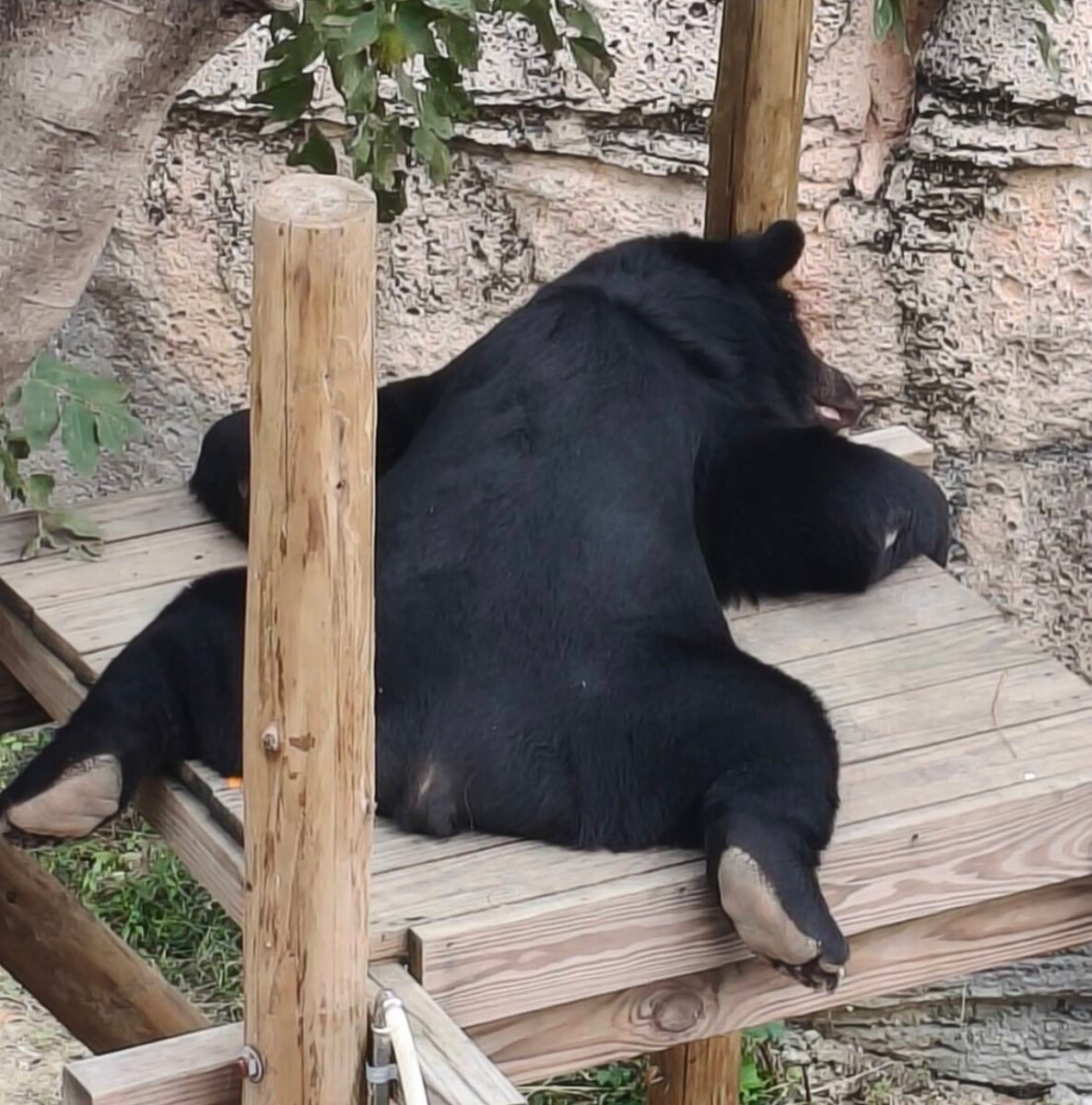 ▲黑熊「黑皮」泡湯